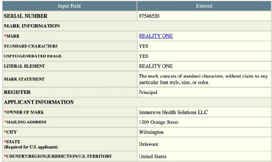这些文件已注册到 Immersive Health Solutions LLC,据传该公司是一家于 2 月成立的苹果空壳公司。该公司的注册是由 Corporation Trust Co。 执行的,该公司被试图保密并与备案保持距离的公司使用。