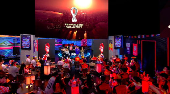 在“世界杯狂欢夜”直播中,PICO视频能力体现的更加直观。观众进入“世界杯狂欢夜”场景后,身处的是一个360°的酒吧,可以选择不同位置观看比赛,这是行业首次实现8K 360° 3D多机位实时直播,自研切片传输算法节省了50%码率,适应不同用户的网络环境。